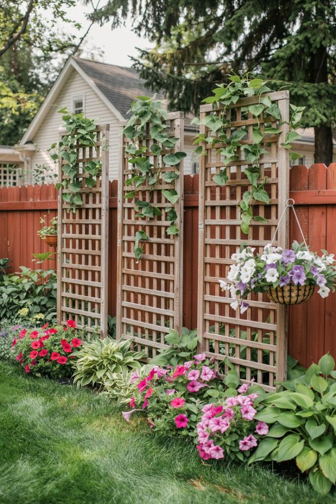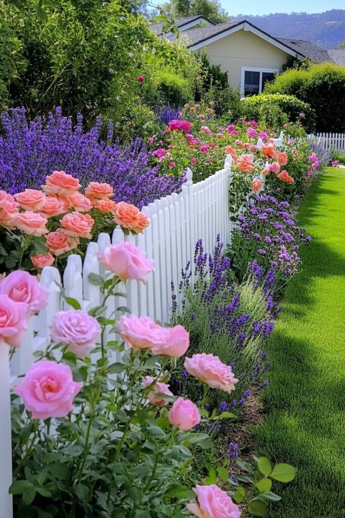 Don’t hide fences—dress them up. Cottage gardens turn vertical spaces into floral showcases.