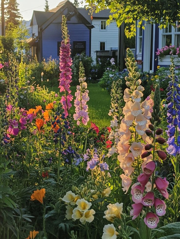 Vertical blooms add depth and make your garden feel lush from every angle.