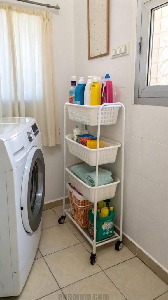 7) Use a Slim Rolling Cart for the Tiny Gap Beside the Washer