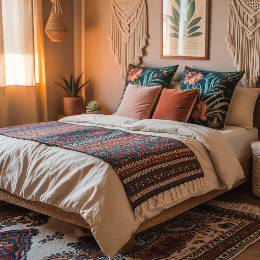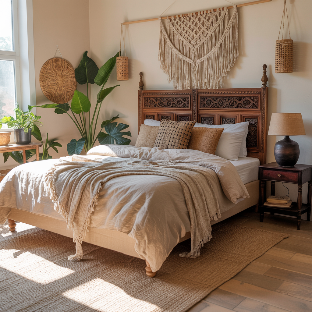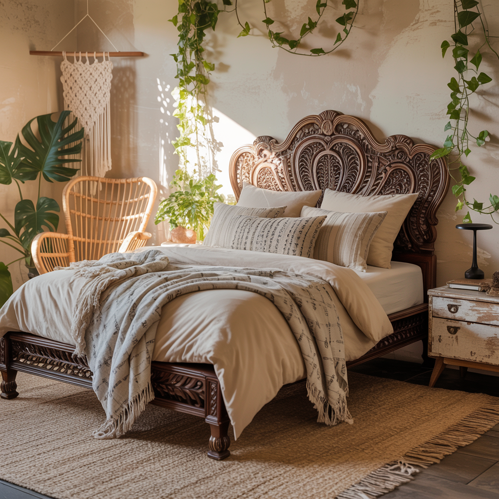 Rattan, carved wood, or even a fabric headboard adds character fast. I once used a folding screen as a headboard—zero regrets. Creative solutions feel very on-brand for boho, don’t you think?