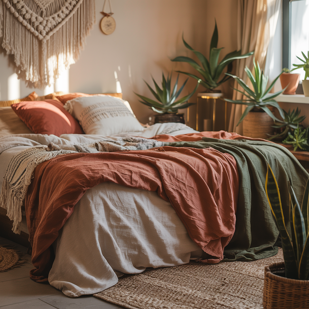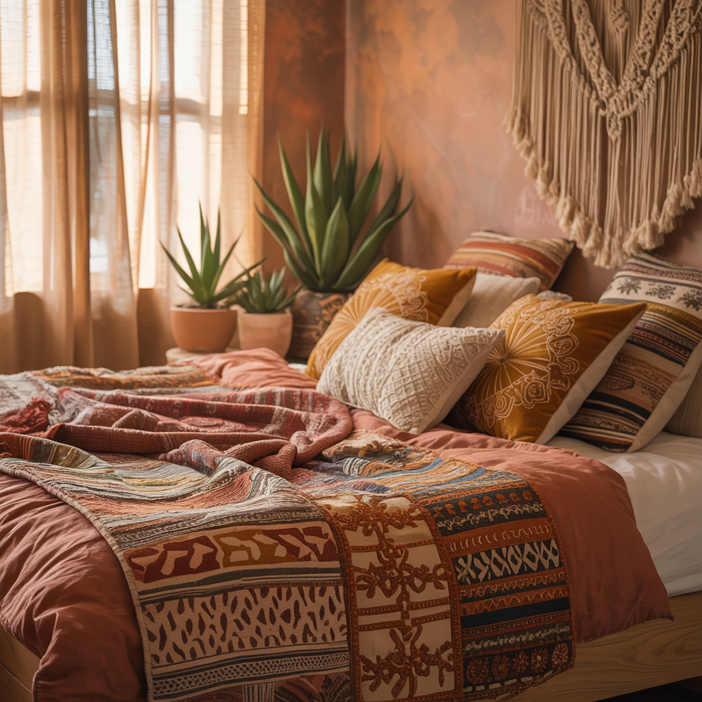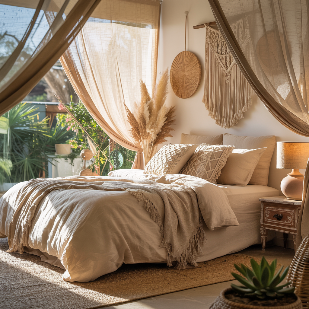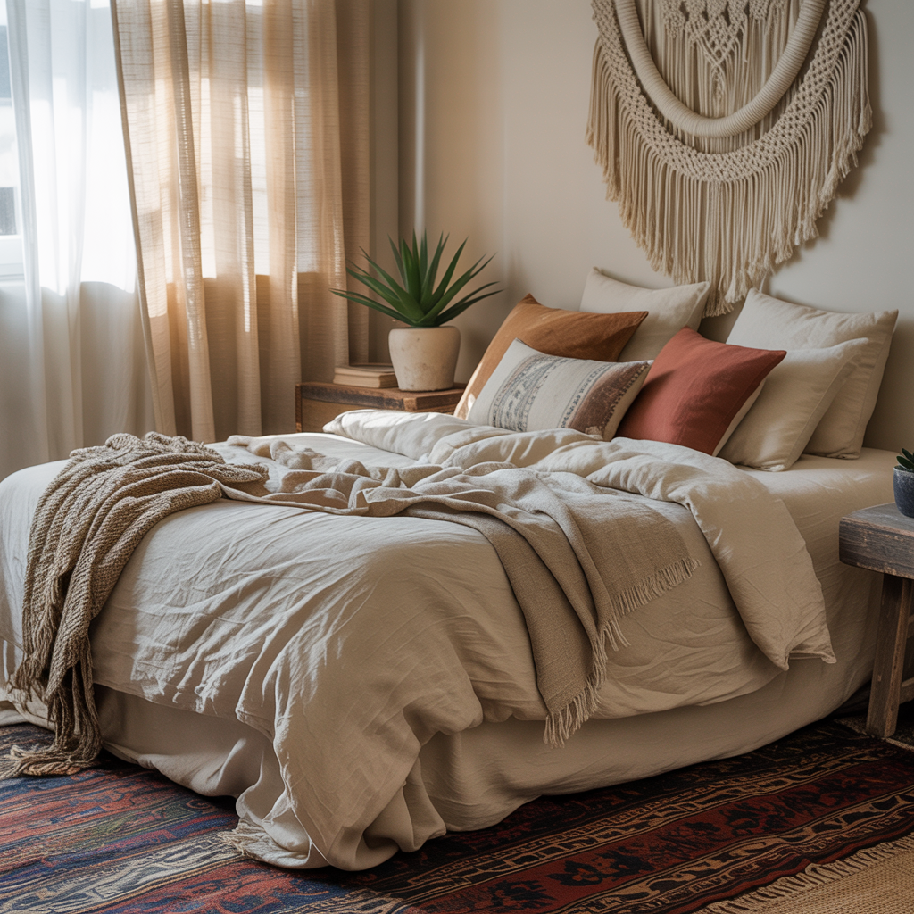 Rattan, carved wood, or even a fabric headboard adds character fast. I once used a folding screen as a headboard—zero regrets. Creative solutions feel very on-brand for boho, don’t you think?