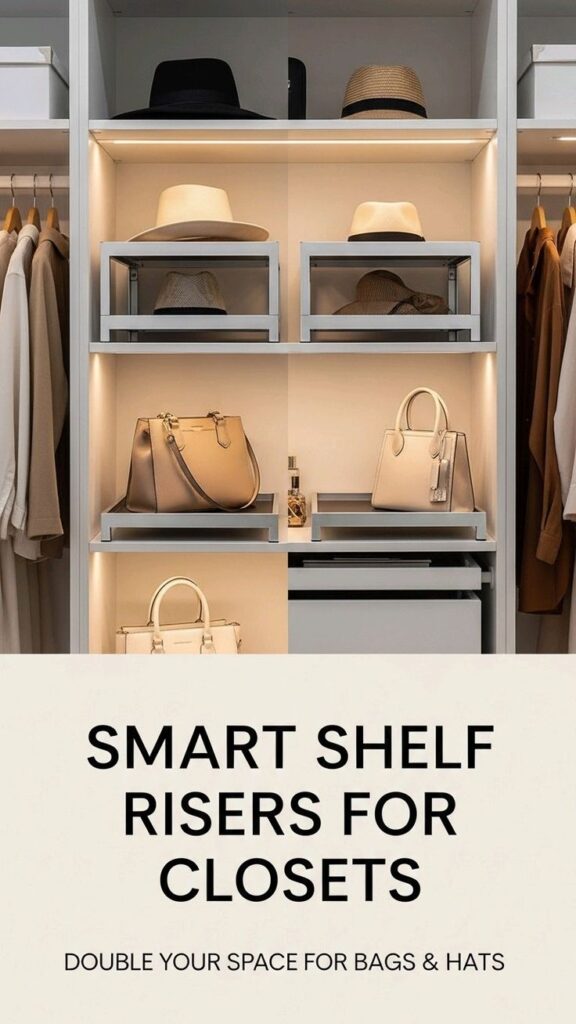 When you have limited cabinet space, every inch counts. Shelf risers let you create two layers in a single cabinet, perfect for stacking mugs, bowls, or canned goods. This simple trick helps you double your vertical space without overcrowding your shelves.