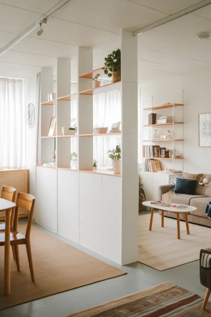 When I first used an open shelving unit as a divider, I expected it to feel clunky. Instead, it gave me storage, display space, and separation in one hit.