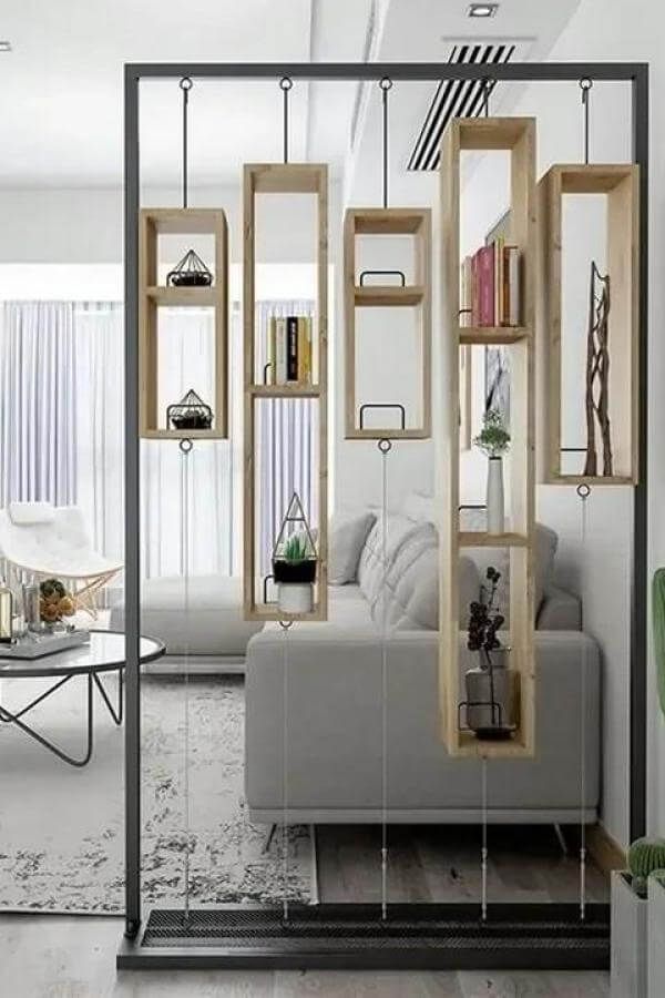This idea works well when you want more privacy than plants or shelves offer, but you still hate the thought of a solid wall.
