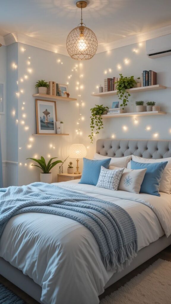 - String lights for soft glow (bed frame, window, or shelf)