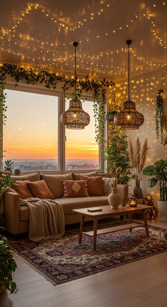 Lighting changes everything. You can style the prettiest modern bohemian decor on earth, and one harsh ceiling light will still make it feel like a waiting room. I use lighting to create warmth and depth, especially in the evening.