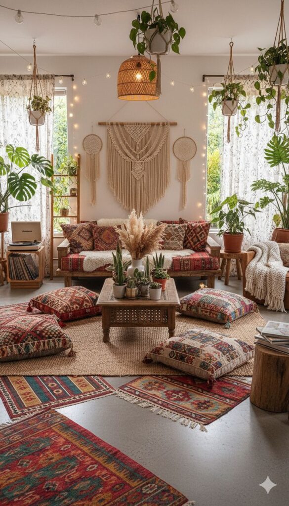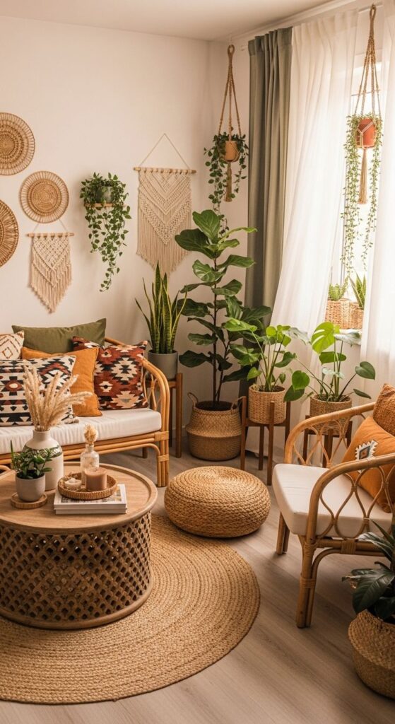 I love this approach because you can swap boho accents whenever you get bored, and you won’t need a full furniture identity crisis every season. Why lock yourself into one look when you can just change a few pieces and call it a “refresh”?
