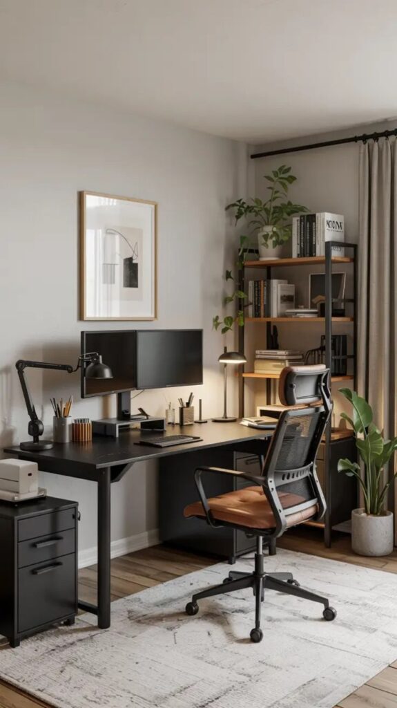 You don’t need a full office, but you do need a work setup that doesn’t hijack your entire apartment. A compact desk, a supportive chair, and smart cable control can make your space feel focused and modern. You can keep your living room from turning into a 24/7 workstation.