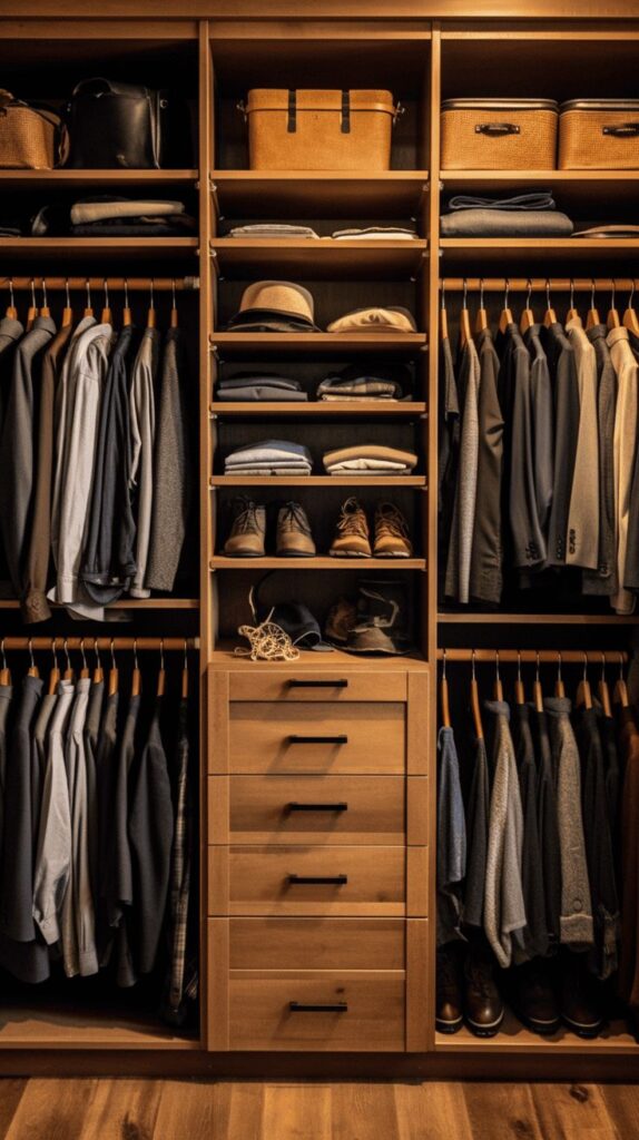 You can’t build a modern men’s apartment with clutter all over the place. You need storage that hides chaos and still looks intentional: closed cabinets, baskets, and multi-use furniture. You can keep your surfaces clear and your brain calmer.