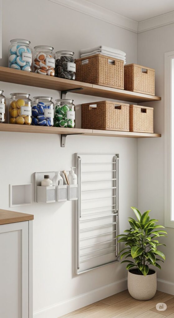 Walls count as storage, and I treat them like gold in any laundry room setup. You can free up your floor and your brain by moving supplies upward. Why store everything on the ground when you can store it where your eyes already look?
