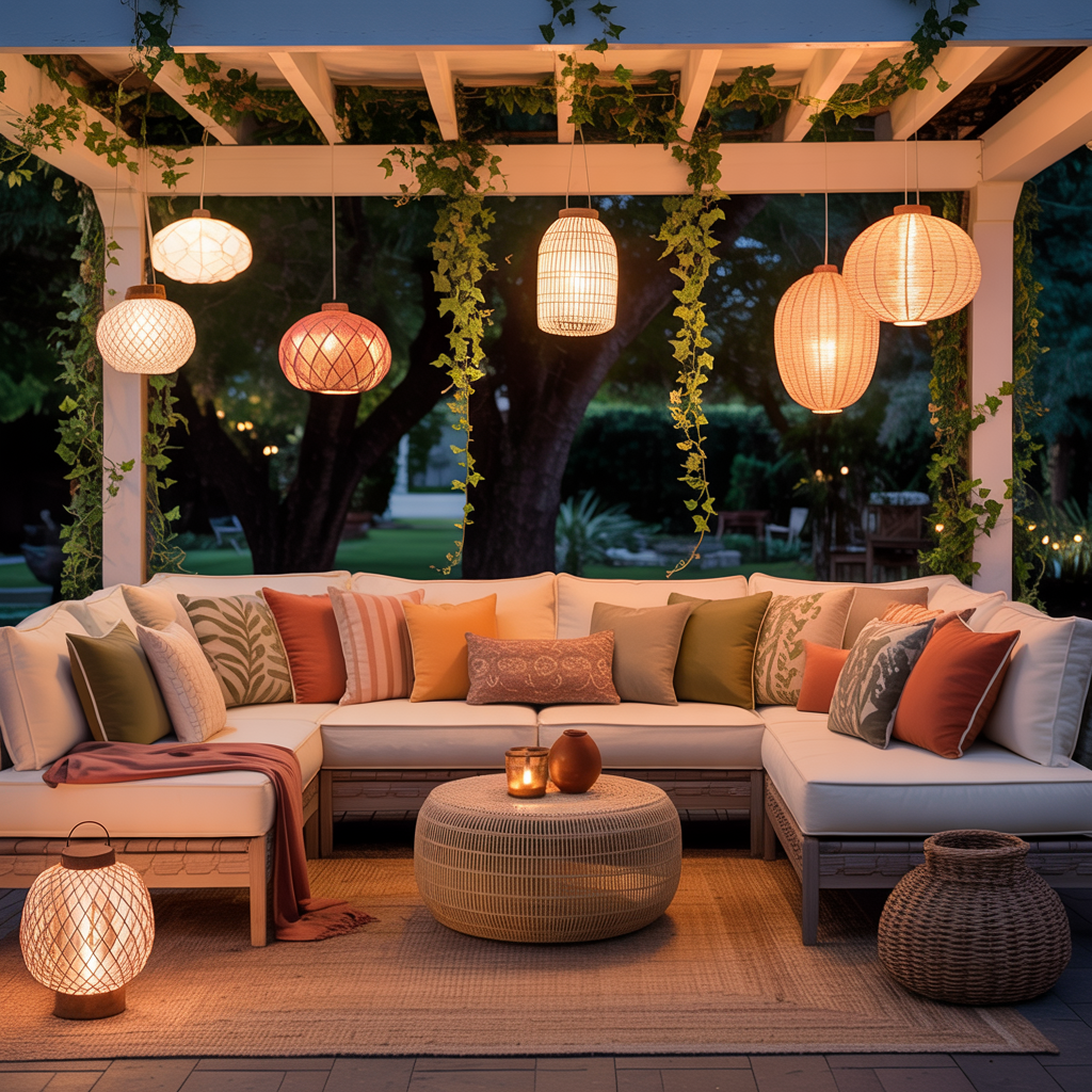Soft cushions, layered textures, and warm lighting create instant coziness. Ever wrapped yourself in a blanket outside with a warm drink? That’s the goal.